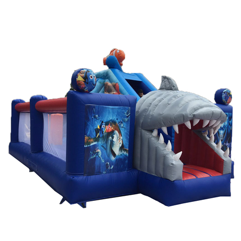 Большой открытый Крытый игровой надувной комбо акула слайд-батут